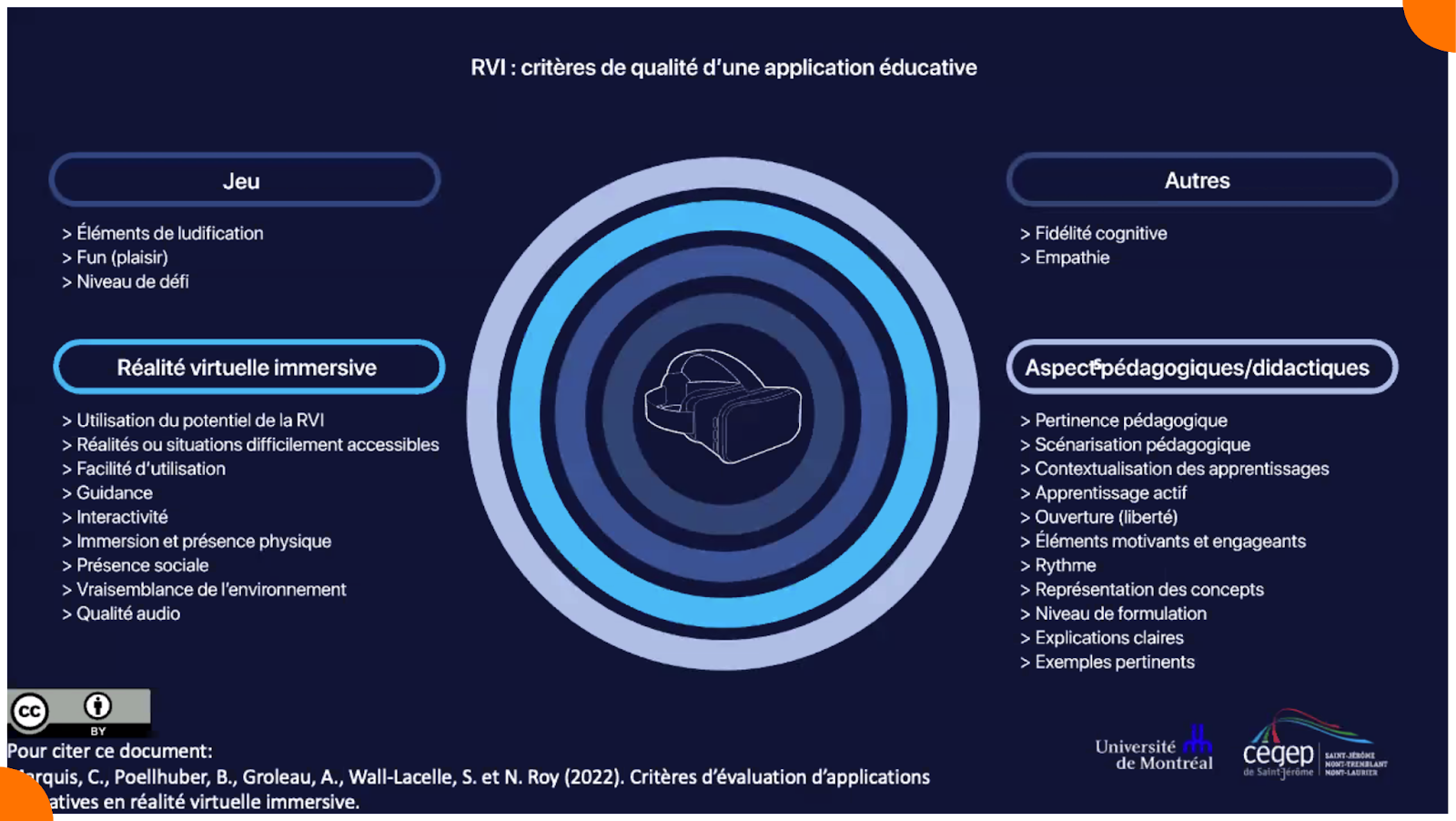 Jeux sérieux en réalité virtuelle : des principes pour un développement réussi · Christine Marquis (Cégep de Saint-Jérôme), Bruno Poellhuber (Université de Montréal), Sébastien Wall-Lacelle (Cégep de Saint-Jérôme)