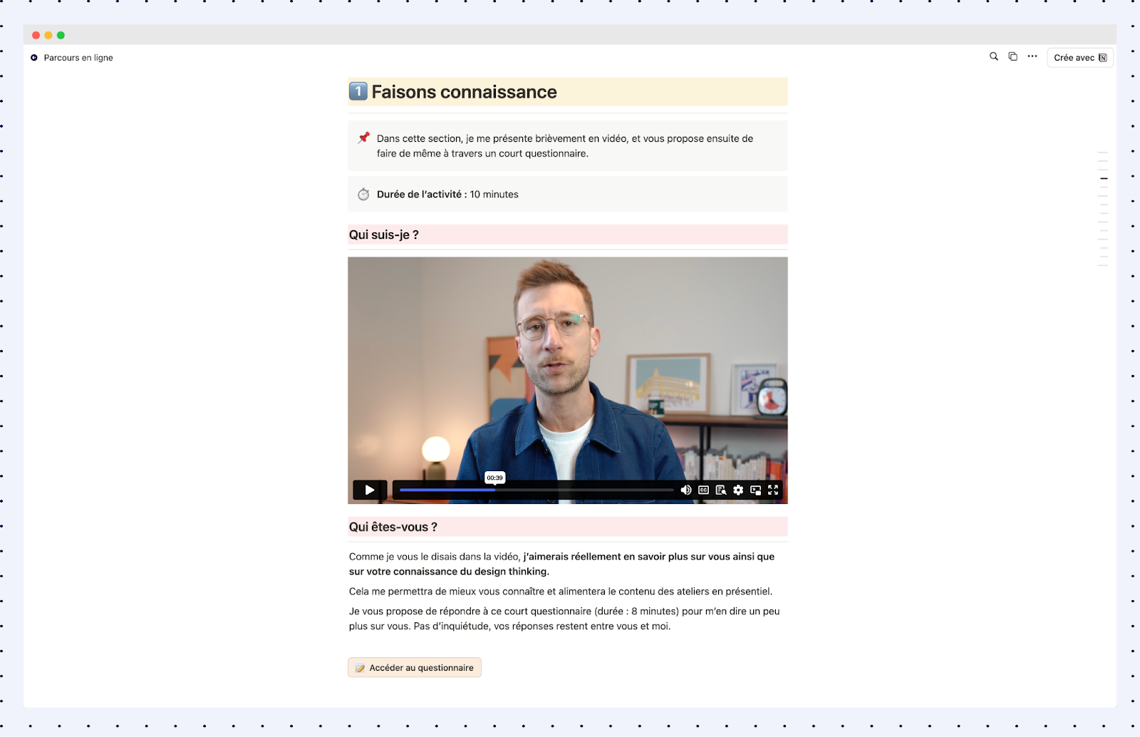 Pour prolonger l’apprentissage, je propose toujours une boîte à outils numérique : un espace utile dans l’action, pas seulement lors de la formation.