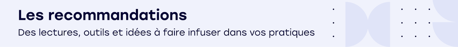 Les recommandations · Des lectures, outils et idées à faire infuser dans vos pratiques