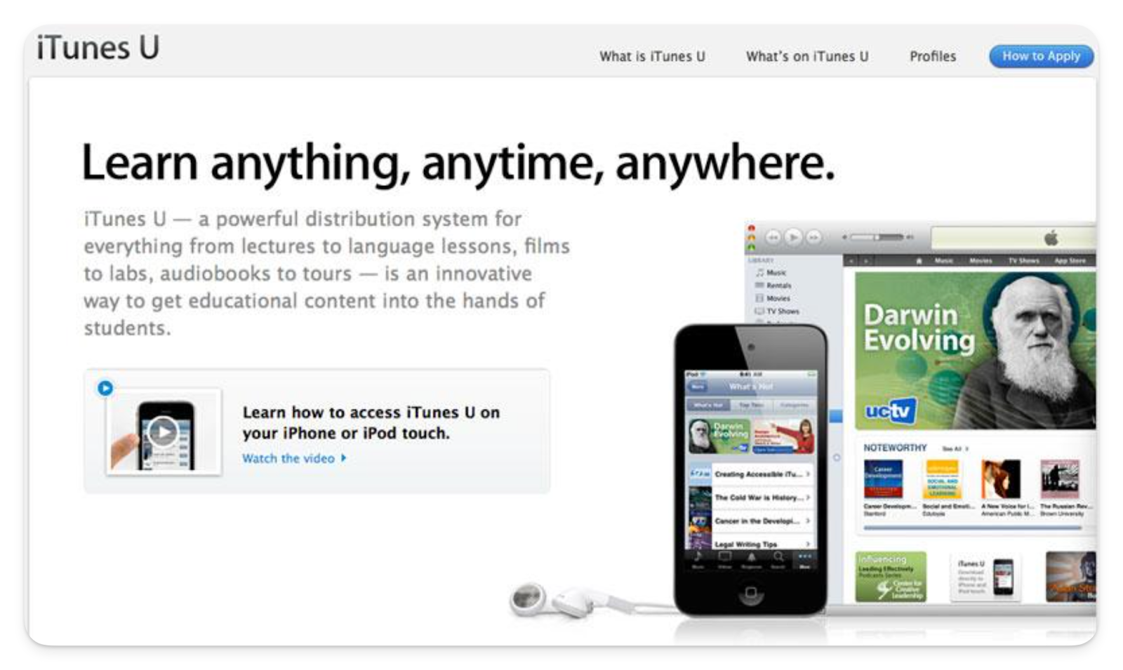 Cela sonne comme un slogan ? Vous avez raison ! Le terme est issu du marketing, et en 2011, iTunes U, la plateforme de podcasts pédagogiques d’Apple, utilisait en 2011 la phrase suivante : “Learn anything, anytime, anywhere”.