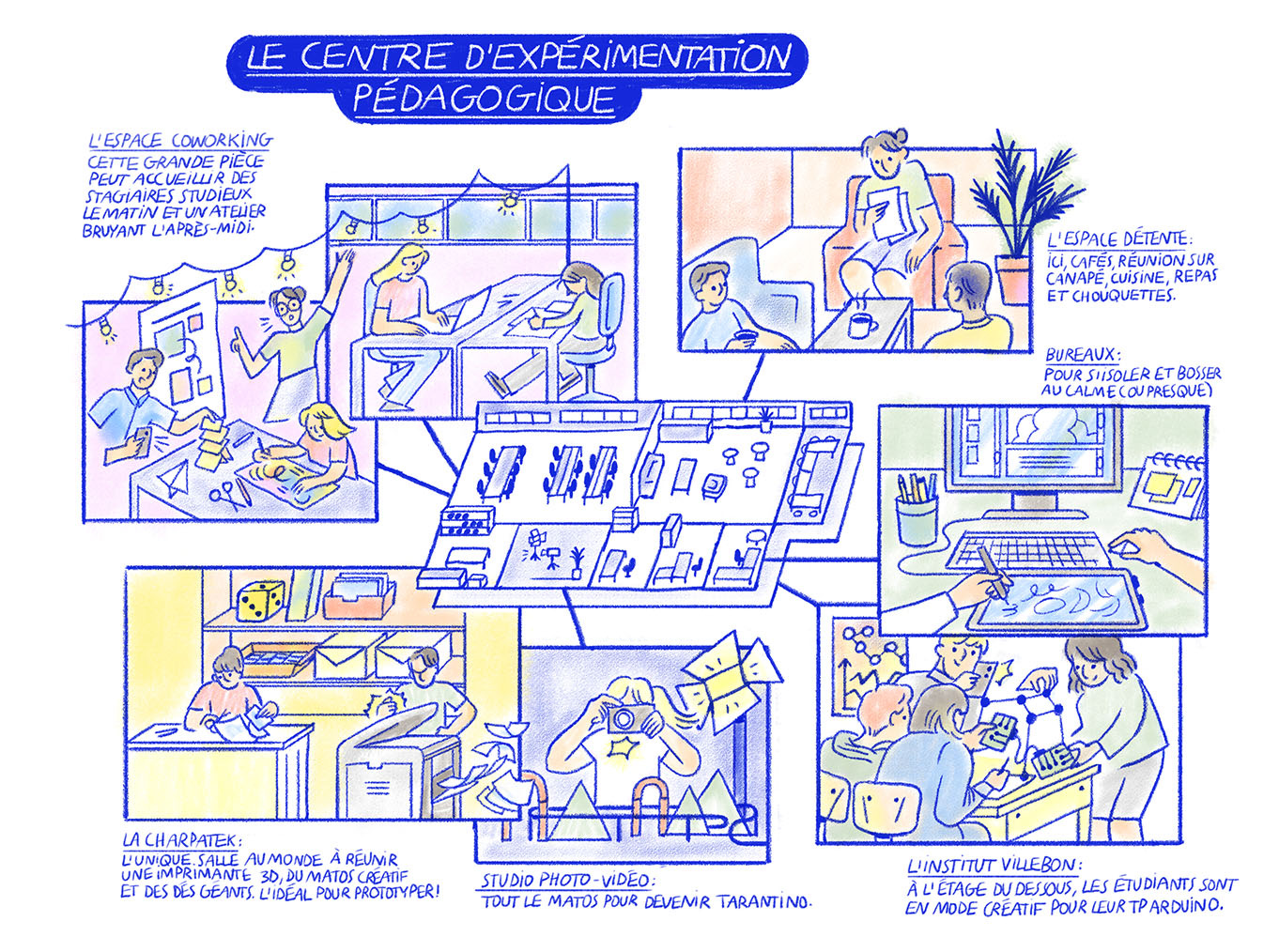 On a réorganisé notre labo pour ce travail interdisciplinaire, souvent dans le prototypage et le bricolage. On travaille aussi au Centre d'Expérimentation Pédagogique de l'Institut Villebon-Charpak, un super endroit pour développer des projets pédagogiques et les penser aussi.